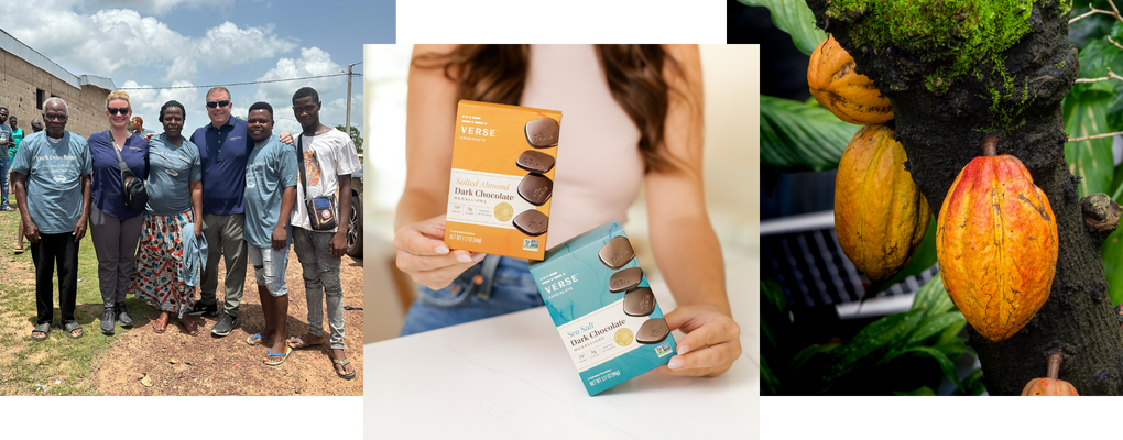 At Verse, our commitment to exceptional chocolate goes beyond taste—it starts at the source. We’ve recently transitioned our cacao sourcing to Konankro, a farming community in the Ivory Coast made up of 140 households. Unlike traditional chocolate makers who import dried cacao beans, we process our cocoa mass locally, creating more value and revenue for the community. In addition, we pay annual premiums to fund vital projects like building wells, health clinics, and expanding access to electricity and clean water—ensuring that every box of Verse chocolate supports a better future.