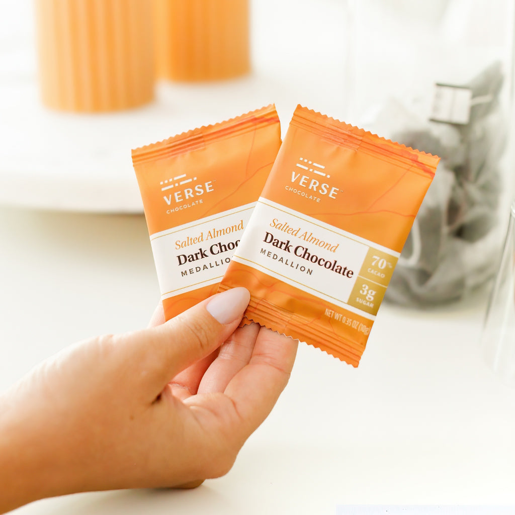 Let this be the month to replace less forgiving habits with delicious and healthier ones. The easiest way to start a new healthy habit is to subscribe to one. Just click a button, make a selection and wait for the healthy chocolate habit to begin. We recommend one to three Verse medallions per day, so a package a week should keep you stocked up on Verse!